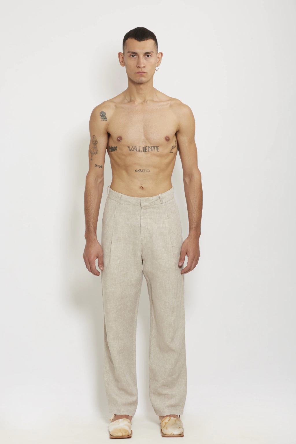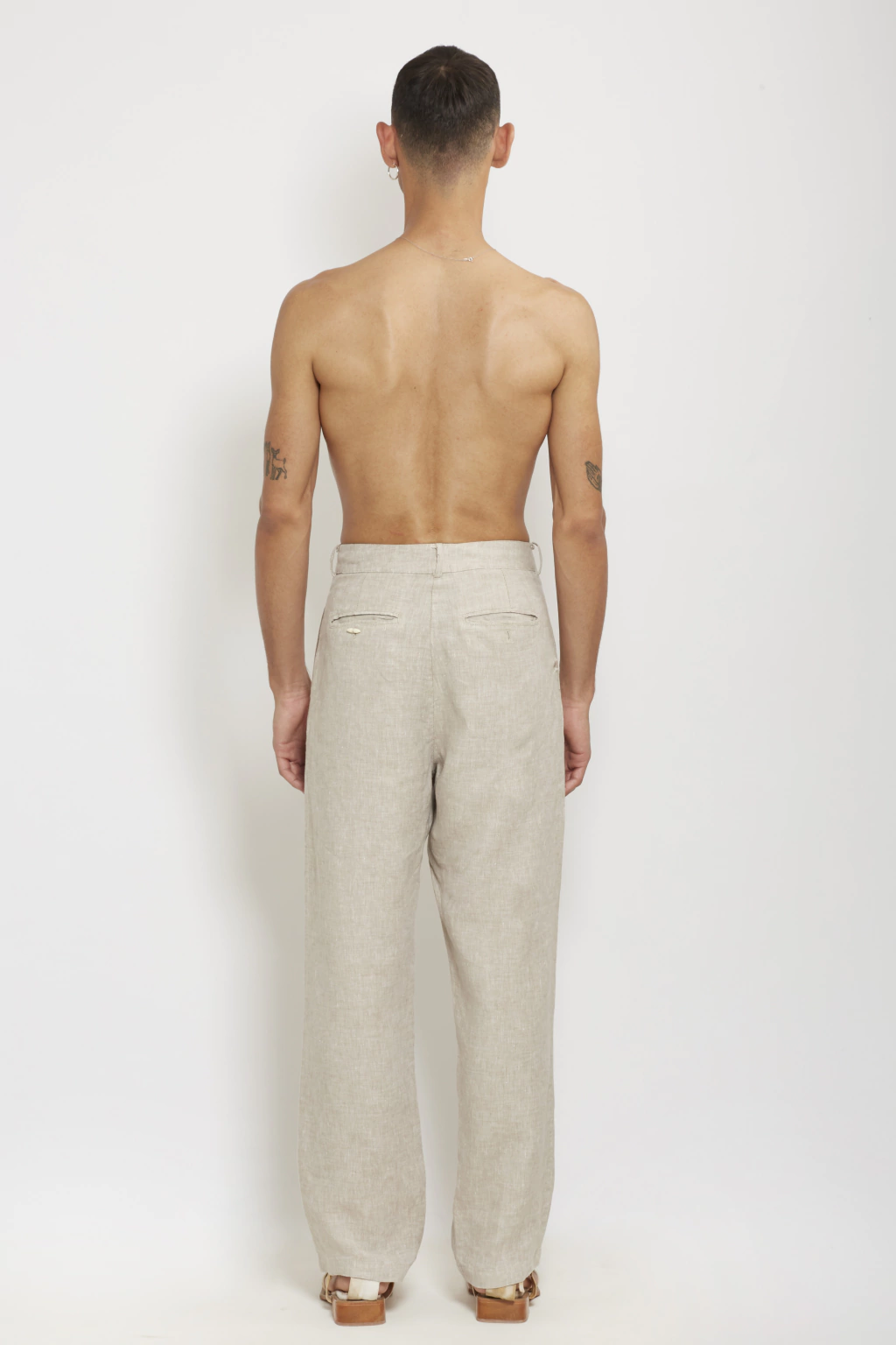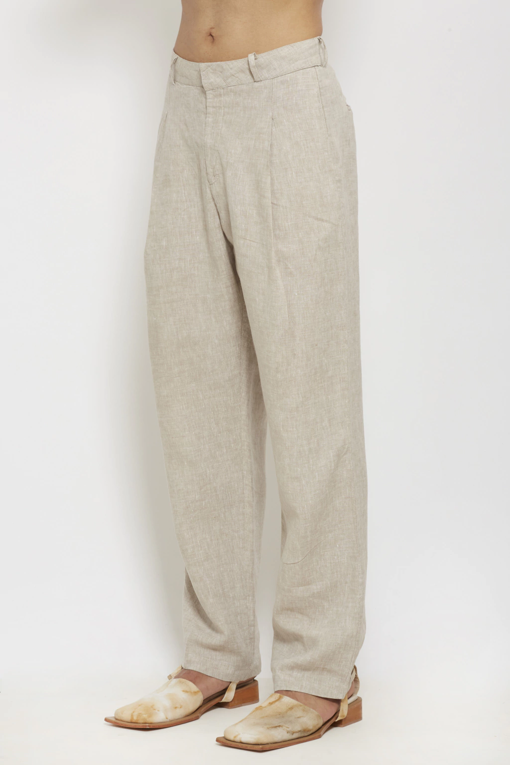 Oversized tailored, single pleated pants in linen.